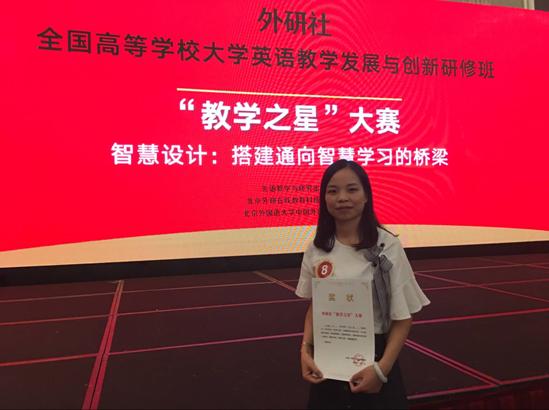 8月4日,2017年外研社“教学之星”大赛复赛第六期在成都落下帷幕,40名参赛教师同台竞技,精彩纷呈。公司VSport大学英语教学部教师吴然菊过关斩将,荣获复赛亚军,这是公司自参加外研社“教学之星”大赛以来取得的最好成绩。
