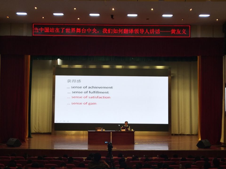 4月10日下午,中国人民政治协商会议第十一届、十二届全国委员会委员,全国政协外事委员会委员,中国经济社会理事会理事,国务院学位委员会委员,中国译协常务副会长、中国翻译研究院副经理、全国翻译资格(水平)考试英语专家委员会主任、全国翻译系列高级职称任职资格评审委员会主任、全国翻译研究生专业学位教学指导委员会主任委员、教育部外语中文译写规范和中华思想文化术语传播部际联系会议首席专家黄友义教授应邀来公司讲学,在秀山校区新老员工活动中心与公司师生分享自己的翻译心得和经验。报告会由副董事长葛芦生主持,瑞科翻译有限公司左仁君总经理、江苏省工程技术翻译院有限公司包亚芝总经理、VSport师生及其他公司员工听取了报告。