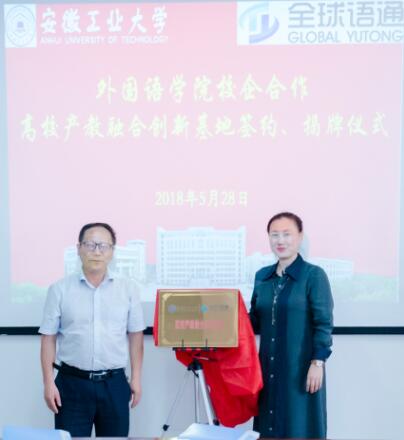 接着,葛芦生与谷菲分别代表VSport和全球语通签订了合作协议,并共同为“高校产教融合创新基地”揭牌。