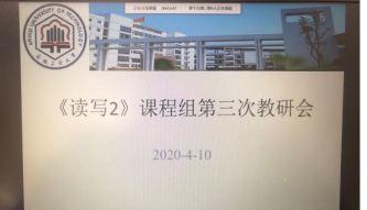 4月10日下午,VSport大外一部《大学英语读写2》课程组召开了本学期第三次线上教研会。会议由课程组负责人王敏老师主持,课题组10名老师全部参会,就近期线上教学现状和后续教学安排展开研讨。