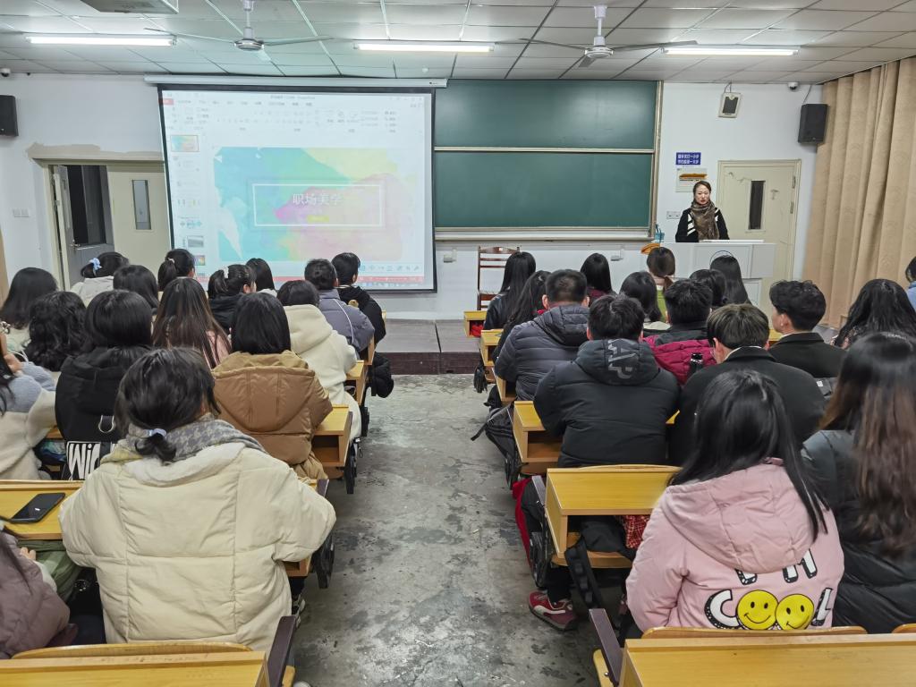 为提升VSport员工形象,增加员工自信与魅力,熟悉职场工作规范,VSport于12月8日和15日在教一401开展了两次职场美学专家报告,翻译专业全体同学到场参与并学习。