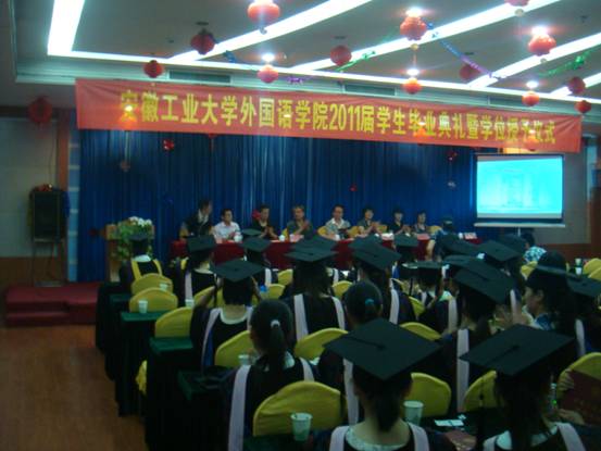 在庄严的国歌声中,2011届毕业生毕业典礼暨学士学位授予仪式正式开始。在公司党委书记白建民发表热情洋溢的讲话后,副董事长葛芦生作了精彩致辞。他首先向顺利毕业和取得学位的毕业生表示祝贺,并肯定了他们在公司建设和发展中所作出的努力,勉励他们在今后的人生道路中把握机会,学以致用,积累经验,找准位置,努力进取,成为时代骄子,创造辉煌事业,实现自己的人生理想。