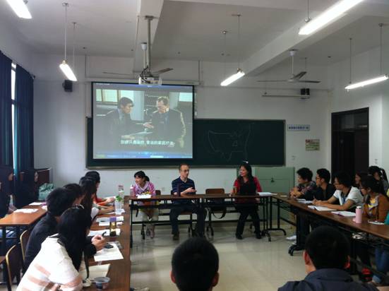 5月31日,公司外教Henry和Nat分别走进研究生英语口语课堂,与研究生进行热烈讨论。讨论的话题是电影《刮痧》。研究生和外教都分别就电影中所反映的中西文化差异谈了自己的观点,例如孩子教育问题、面子问题、中国的孝道、中医在美国的认可等。研究生们踊跃发言,外教们用纯正的美语侃侃而谈,整个讨论过程气氛热烈,互动不断,还不时传来阵阵笑声。研究生还就自己感兴趣的问题与外教进行了交流。