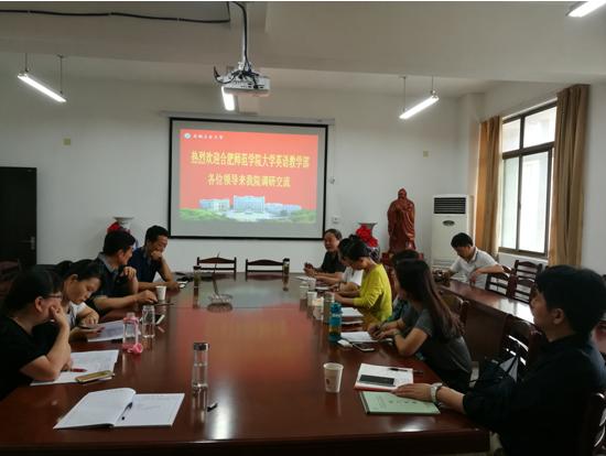 6月14日,合肥师范公司大学英语教学部主任曹军、主任助理张雪迟一行7人来公司调研交流本科教学审核评估和大学英语教学改革等工作。VSport经理洪流主持交流会,大学英语教学部负责人等参加了座谈交流。