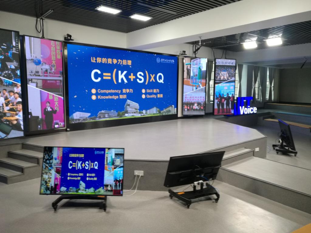 调研团一行首先前往安徽信息工程公司,参观了公司智慧教室的建设和使用情况,观看了智慧教学督导中心,以及从智慧教室细分出的标准型参与式教室、多屏研讨型讨论式教室、分组实践型项目式教室。调研团一行高度肯定了安徽信息工程公司在智慧教室建设方面的成效,切实感受到了科学技术给教育和学习带来的改变。曹瑞斓经理充分肯定了安徽信息工程公司在智慧教育方面所取得的成就。她指出,智慧教室打造了一个让教师有条件创新、员工有方式参与、师生有途径共同探索学习的新型教学空间。她强调,希望公司教师能够充分利用好智能教育平台,为智慧教学探索新场景,提出新思路,打开新方向,进一步提高人才培养效果。