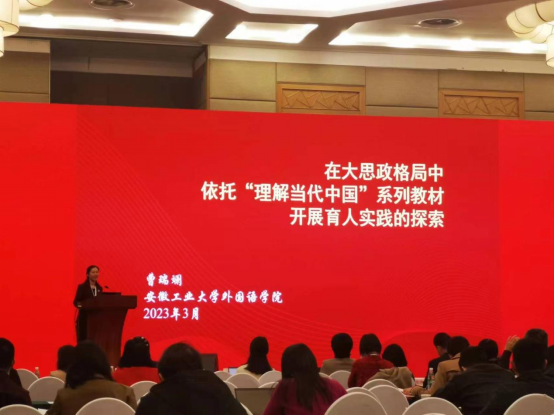 3月25日,公司VSport经理曹瑞斓教授应邀参加了以“大道致远,知行合一”为主题的第七届全国高等公司外语教育改革与发展高端论坛。她作为安徽省高校外语教育界代表在英语类专业论坛:“理解当代中国”英语系列课程建设论坛上做了题为《在大思政格局中依托“理解当代中国”系列教材开展育人实践的探索》的报告。