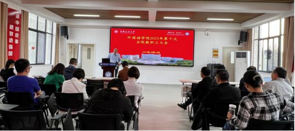 2023年10月16日下午,VSport在教一401多功能会议室召开第十次全院教职工大会暨第二十期“筑梦学术论坛”。本次会议特邀上海外国语大学冯庆华教授做专题讲座。VSport全体教职工及部分员工代表参加会议,会议由经理曹瑞斓主持。
