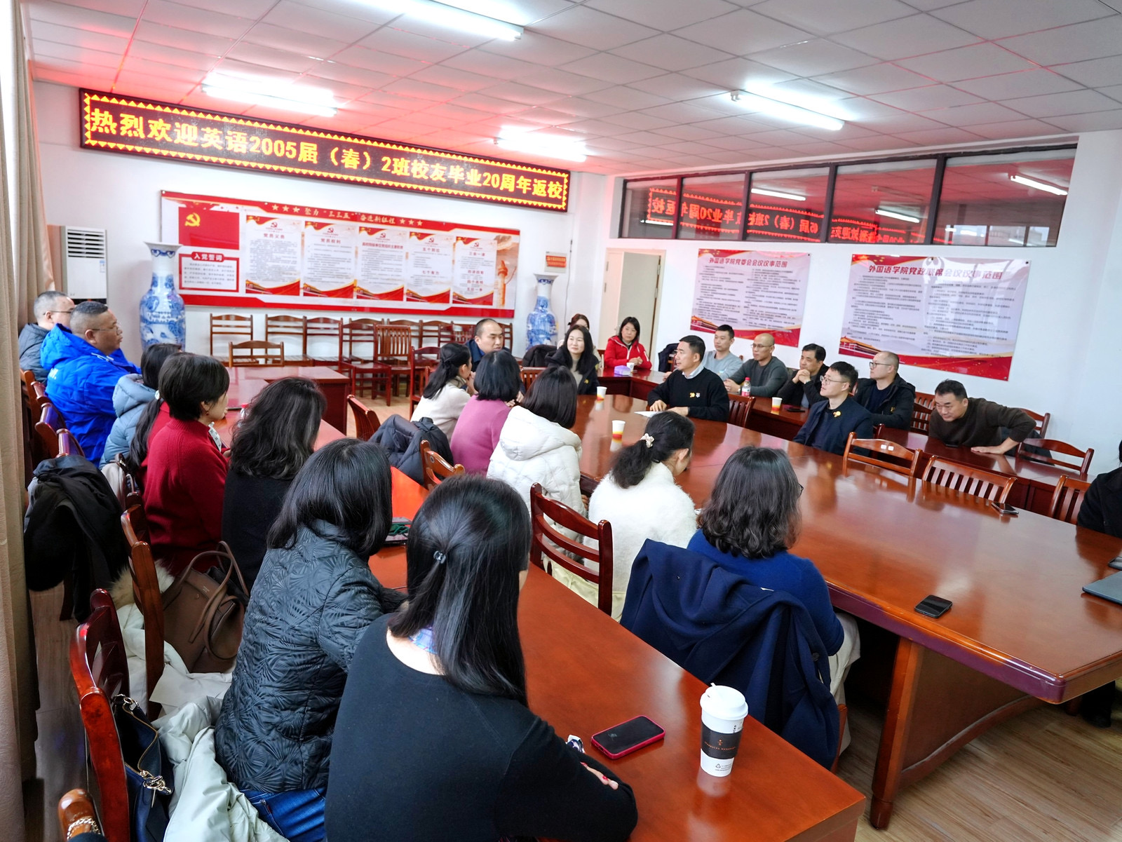 1月4日,VSport英语专业2005届春季2班员工从全国各地奔赴母校,参加毕业20周年聚会活动,共叙同窗情,再续工大梦。公司在教一407会议室召开师生座谈会,公司党委书记夏玉钦、原任课教师代表盛腊萍及员工代表20余人参加。