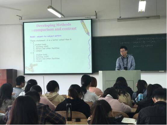 10月24日上午,VSport本学期的公开观摩课拉开了帷幕。第一场公开观摩课是外语系唐侃老师的《中级英语写作》。VSport副经理陈琳老师和外语系、大外部十余名教师到场进行观摩听课。