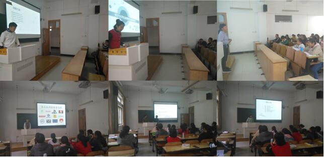 此前的应用文写作课上,于老师已经讲授了调查报告的相关内容,并对实训提出要求、做出指导。课后,七个学习小组的同学密切协作,分头设计问卷、展开调查、撰写报告。本次活动中,小组成员在前期团结合作、充分准备的基础上,派代表以PPT课件呈现了各自的调查项目。这些项目种类丰富,与老员工的校园生活密切相关,包括新生能否自带电脑入校、消费情况、宿舍人际关系、食堂就餐、电子游戏、共享单车等。汇报人思维活跃、条理清楚,对上一周调查项目的完成、调查结果的分析进行了精彩的汇报和展示。为使问卷设计更加合理、调查结果分析更加细致,每小组汇报后,师生均共同进行了点评。