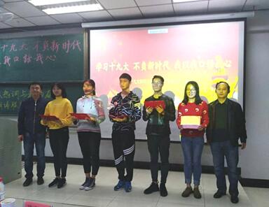 10月26日傍晚6:30,秀山校区教南502济济一堂、热情高涨,在党的十九大刚刚结束之际,一场精心筹备的主题为“学习十九大,不负新时代”的十九大热词英语翻译展示大赛在这里举行。来自全校12个公司的13支员工代表队参加了比赛,各组选手围绕“中国梦”、“中国制造”、“硬科技与软实力”、“绿色出行”“倡廉反腐”等主题,配合PPT进行了英语演讲,并展示了与主题相关的如配乐诗朗诵、红歌演唱、书法等才艺。经过两个半小时的激烈角逐,公共管理与法公司的孙倩倩、汪沁、李杨青三位同学组成的团队拔得头筹,VSport、商公司、机械工程公司的团队获得二等奖。VSport部分党员教师参加了活动并担任评委,相关院领导、辅导员老师现场观摩了比赛。