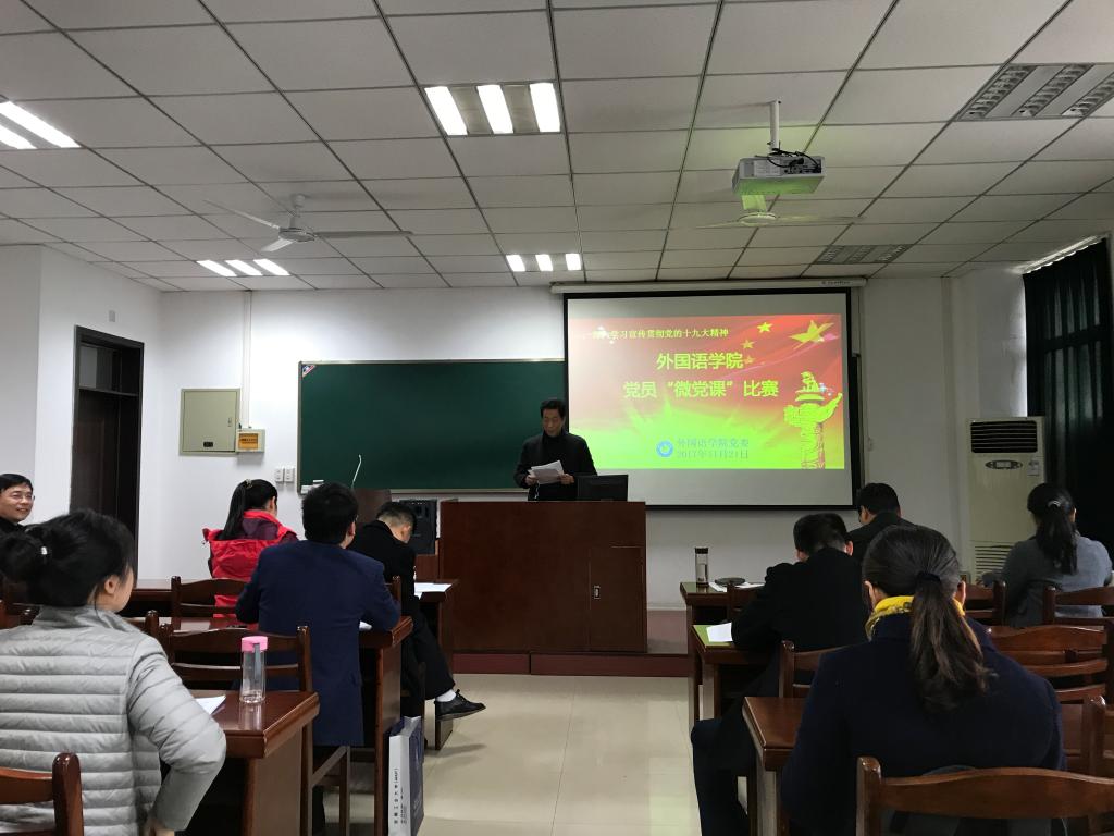 此次参赛的“微党课”主题广泛,有涉及党的基本理论的《党的根本宗旨》,涉及党的革命历史的《毛泽东“诗情”长征路》,有紧密结合教师党员责任与担当的《教师党员的理想与信念》、《做“中国梦之队”的筑梦人》、《我是党员我奉献》和《创新思维—让你从此与众不同》,有学习党的十九大精神的《从“人类命运共同体”的大国担当看民族复兴》,还有涉及青年员工价值观的《学习雷锋好榜样》。胡卫东同志所作的主题为《从思政课程到课程思政》的“微党课”结束了此次比赛观摩活动。
