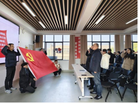 宣誓仪式在庄严的《国际歌》声中拉开帷幕。施铜兴宣读了此次新发展党员和按期转正党员名单。夏玉钦、施铜兴为新党员佩戴党员党徽。全体党员面对党旗庄严宣誓。
