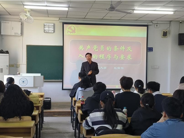 赵保平老师以坚守入党初心为根本遵循,重点阐释入党的政治标准与发展程序、党员的权利与义务、纪律规矩与行为准则三个核心维度。他强调思想入党是首要原则,要求入党积极分子深入学习党章党规、淬炼政治品格、参与实践锻炼,在理论武装中筑牢信仰根基,在学习生活中彰显政治本色。