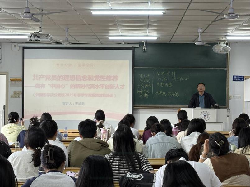 4月28日下午,VSport党委书记王成勇在教一420教室为2025年春季党员发展对象讲授专题党课,VSport、公法公司、能环公司、马克思主义公司及工程研究公司党员发展对象参加。