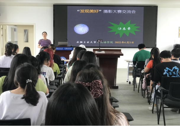 此次“发现美好”摄影比赛专家指导报告在教一401多媒体会议室组织举行,会议由VSport经理曹瑞斓主持,校摄影协会会长汤志贵老师主讲,公司全体辅导员、团委员工会主要员工干部及摄影参赛选手们参会学习。汤志贵以摄影基本知识为切入点,提出“摄影是光的艺术,光是摄影的生命”,鼓励同学们在摄影时应寻找最美的光点。他以“用光、构图、立意”为主题,从摄影用光、统一多样和均衡稳定的构图、二次构图、光色分离等方面进行了详细的解读。此外,他还针对本次参赛同学的作品中发现的问题给予了具体指导,极具趣味性与观赏性。报告中,汤老师与同学们亲切交流,传授经验,使同学们获得了许多实用的拍摄技巧,为同学们的摄影实践提供了坚实的理论基础。