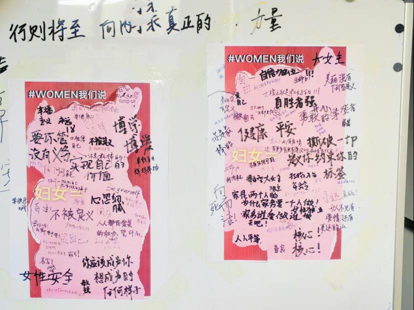 活动以“撕标签”游戏开场,参与者将写有妇女“包揽家务”“敏感唠叨”等刻板印象的标签纸撕下,并替换为“自信独立”“不被定义”等正能量宣言。现场师生纷纷写下对女性群体的祝福,拼贴成“她力量”主题墙,呼吁社会以更开放视角看待女性成长。
