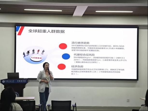 刘晓慧围绕“科学运动,健康续航”主题,从减重现状、原理、饮食、运动、生活习惯及实施保障体系等方面,讲授健康体重的重要性,以丰富的专业知识和生动的案例,为同学们深入浅出地科普了科学运动相关专业知识。她着重强调,在爱国卫生运动的大背景下,树立“科学运动健康体重” 理念的重要性。通过科学锻炼,同学们不仅能够塑造健康的体魄,有效预防疾病,为学习和生活打下坚实基础,更能在精神层面收获自信与自尊的提升,以更加积极乐观的态度面对挑战。讲座过程中,刘晓慧运用大量图文资料,结合清晰的讲解逻辑,将原本晦涩的健康知识变得通俗易懂,赢得了现场同学们的热烈掌声。