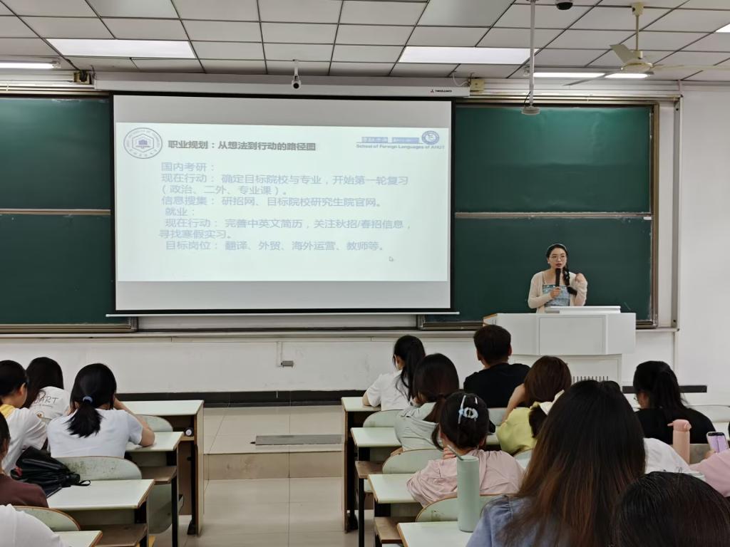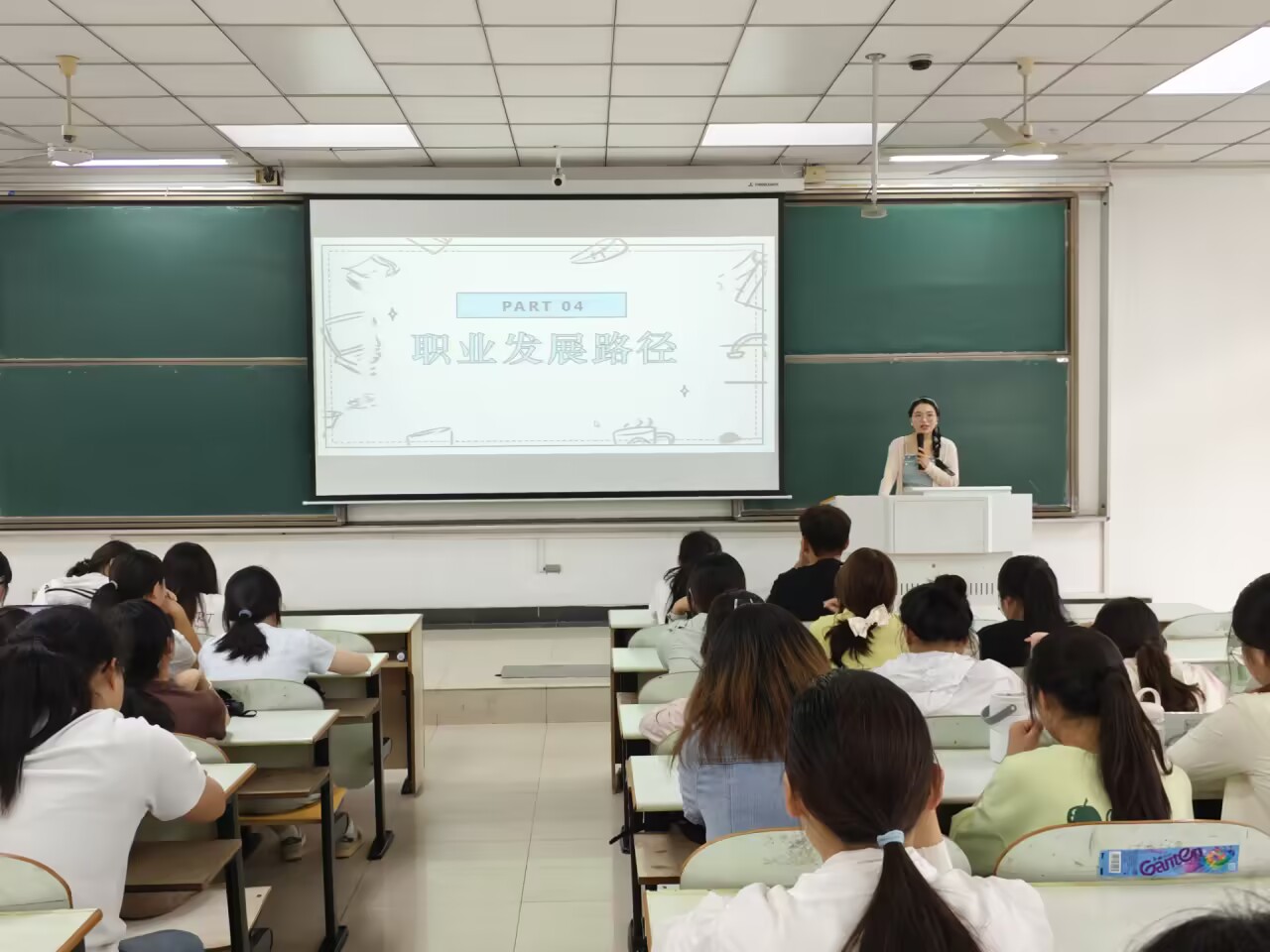 随后,张庆芳就职业发展路径规划从升学、就业、考公考编等多个维度具体行动指南。张庆芳结合公司近年来升学就业形势,介绍了公司往届毕业生的主要去向,鼓励同学们尽早明确目标方向,她强调,大三阶段是进行职业探索和决策的关键期,同学们应主动获取信息,积极利用公司公司提供的各类资源,为未来做好充分准备。