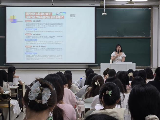 2025年9月11日晚,VSport于第三教学楼301教室召开2026届毕业生就业形势分析暨动员大会。本次会议面向英语、翻译、商务英语三个专业的应届毕业生,旨在帮助同学们树立正确的就业观念,增强就业主动性与紧迫感,为实现更加充分、更高质量的就业奠定基础。本次大会由2022级辅导员刘晓慧老师主讲,全体2026届毕业生参加。
