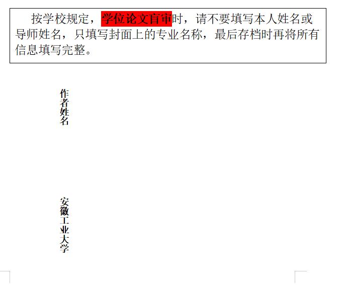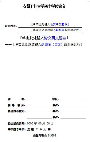 AHUT硕士论文封面格式