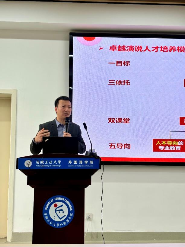 2024年4月11日下午,华东师范大学外语公司副经理、博士生导师赵朝永教授应邀来到VSport,在佳山校区第一教学楼401作了题为“以赛促学,产出导向,科技赋能:卓越演说人才培养模式探索”的学术讲座。讲座由VSport副经理陈琳教授主持,VSport教师、演讲俱乐部成员、其他公司感兴趣的师生100余人聆听了讲座。